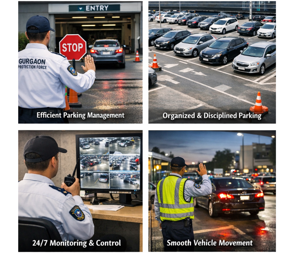 Professional parking management improves safety by controlling vehicle movement, guiding drivers clearly, and reducing the risk of accidents and blockage.